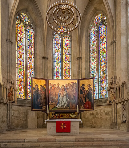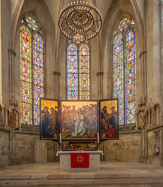 [29] Evelyn Finger, „Ich wollte ein Bild malen, das Hoffnung gibt“. Michael Triegel hat den verlorenen Marienaltar des Naumburger Domes neu erschaffen. Ein Gespräch über Gemälde für die Ewigkeit, in: DIE ZEIT 28 (2022), online unter: https://www.zeit.de/2022/28/michael-triegel-naumburger-dom-marienaltar [letzter Abruf: 20.11.2025].