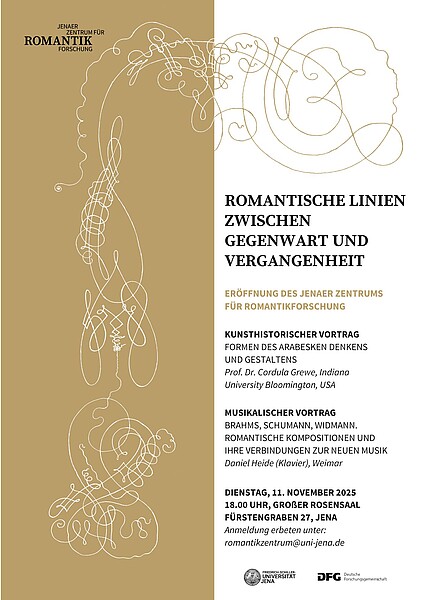 Am Abend des 11. November wird das Jenaer Zentrum für Romantikforschung in den Rosensälen der Friedrich-Schiller-Universität eröffnet.